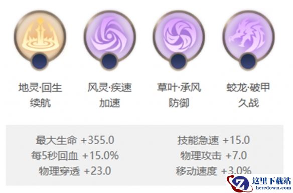 地灵·回生、风灵·疾速、草叶·承风、蛟龙·破甲