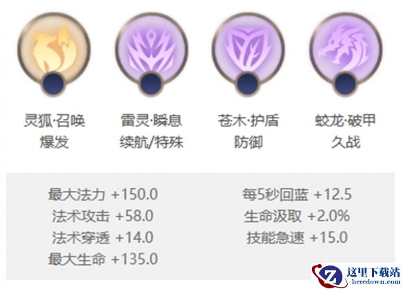 灵狐·召唤、雷灵·瞬息、苍木·护盾、蛟龙·破甲