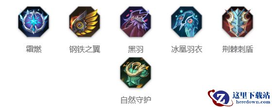 霜燃+钢铁之翼+黑羽+冰凰羽衣+荆棘刺盾+自然守护