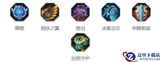 霜燃、钢铁之翼、黑羽、冰凰羽衣、荆棘刺盾、自然守护