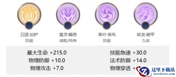 白莲·加护、雷灵·瞬息、草叶·承风、蛟龙·破甲