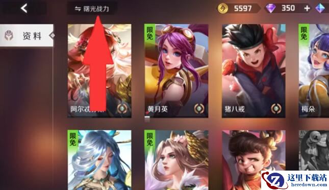 2、然后可以在英雄界面找到左上角的【曙光战力】。