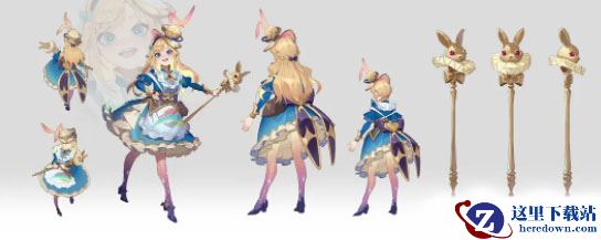 2、角色形象带有童话风格,爱丽丝身穿蔚蓝白裙,手持兔兔拐杖,闯荡并参加童话世界的冒险。