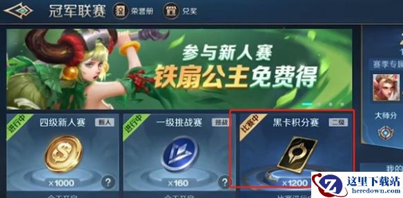 1、在冠军联赛的主界面里可以看见“黑卡积分赛”,点击购买后参加“黑卡赛”。