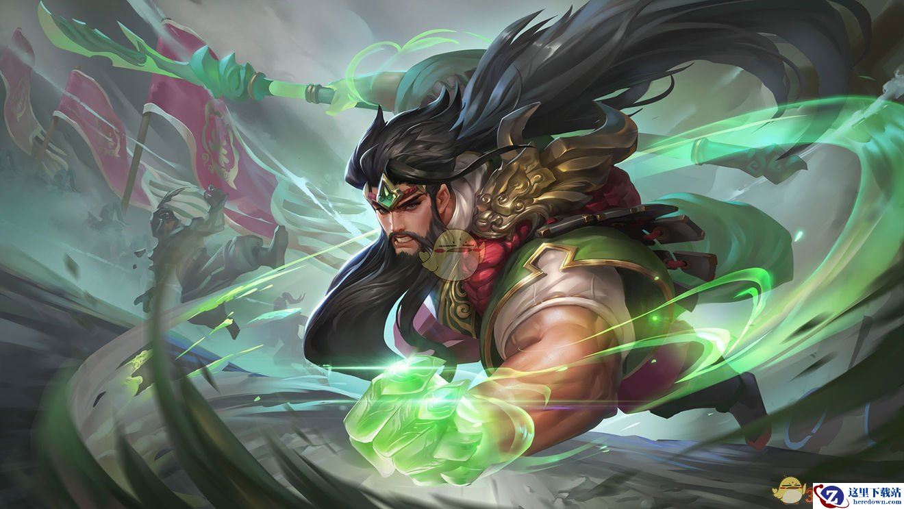 关羽向指定区域跳跃,落地时向周围释放斗气,对自身周围的友方英雄添加抵挡伤害护盾