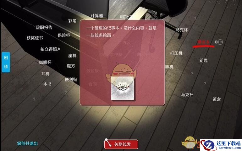 线索详情:一个硬皮的记事本,没有什么内容,就是一些线条的绘画。