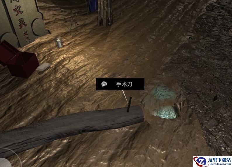手术刀:位于道路一根横着的木头的一端,离着【周文灵坟】不远。