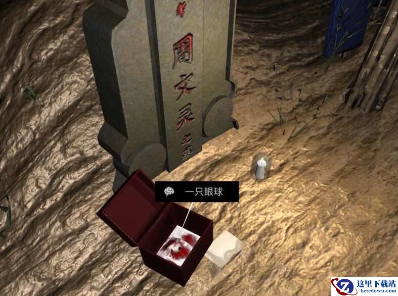 一只眼球:位于周文灵坟前一个木制的盒子里面。