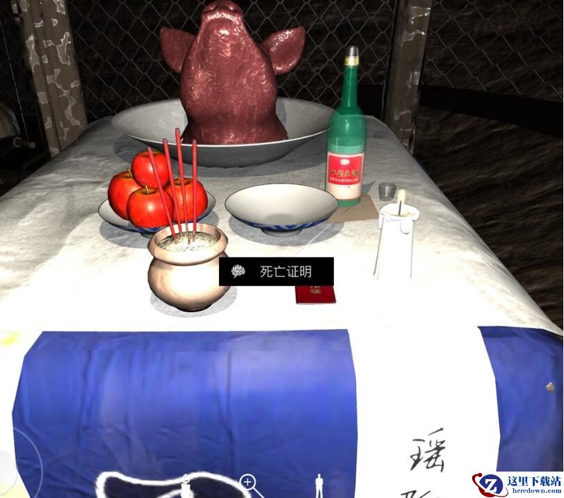 死亡证明:位于出生地右侧的灵堂上面,被酒瓶压着。