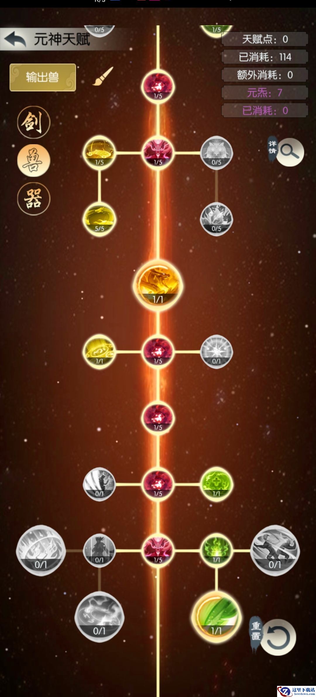因为使用的是先天云恨,所以天赋和灵兽招式如下(云恨等级拉满):