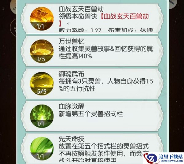 4.灵兽招式:云恨10,治愈术10,其他5