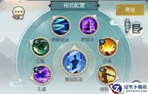 4、最基础的就是招式,排列顺序是 孔雀+五鬼+飘渺+罗烟+血炼+剑指/葵水(孔雀肯定要放在第一个,血炼可以换其它技能,剩下的技能最好不要变)基本上睁目常规就是闪三次,这套技能足矣一套带走对面了。