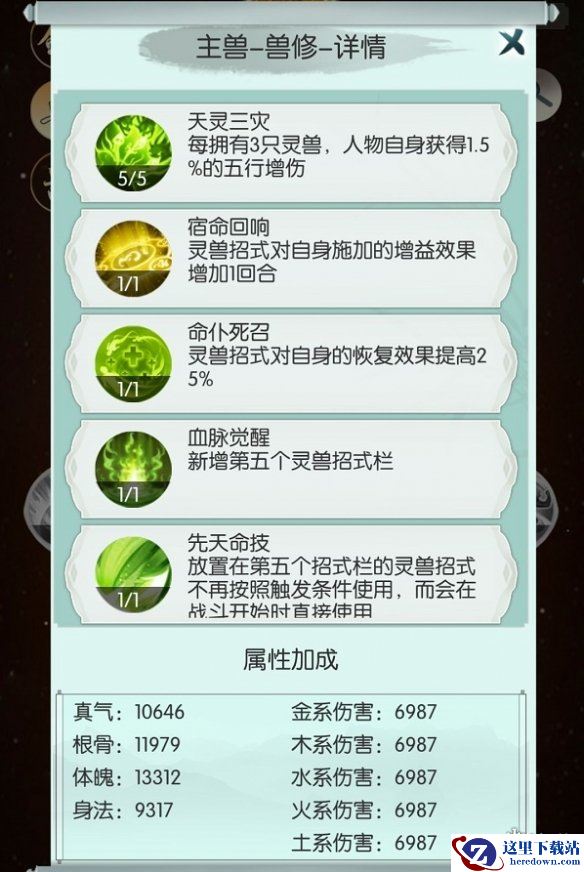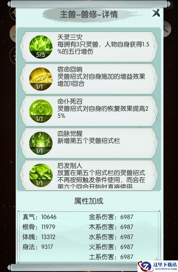 兽天赋和上面一样,只是把先天命技换为后发制人,前面耗血,后面两刀暴击。