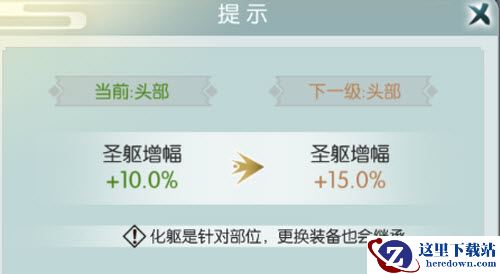 化躯功能是指通过消耗材料提升对应部位的圣躯部件属性加成, 化躯针对的是部位,在更换装备后也会继承。