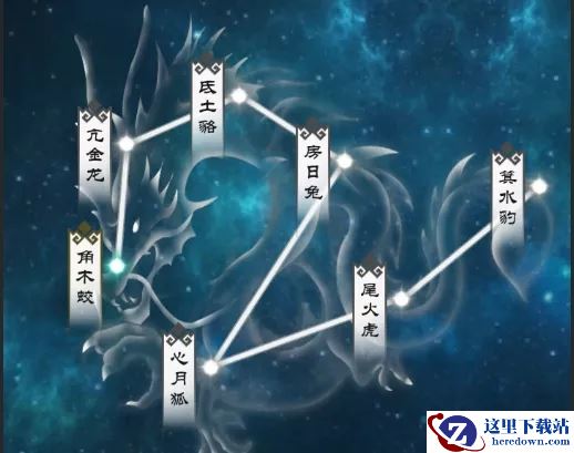 从该玩法包括二十八星宿,每个星宿代表一个大关卡,每个星宿又包括10个星宫,挑战点亮对应的10个星宫后即可点亮该星宿。点亮部分星宫后还有属性的加成,同时每次挑战还有一定数量的妖丹和灵兽精元丹掉落。