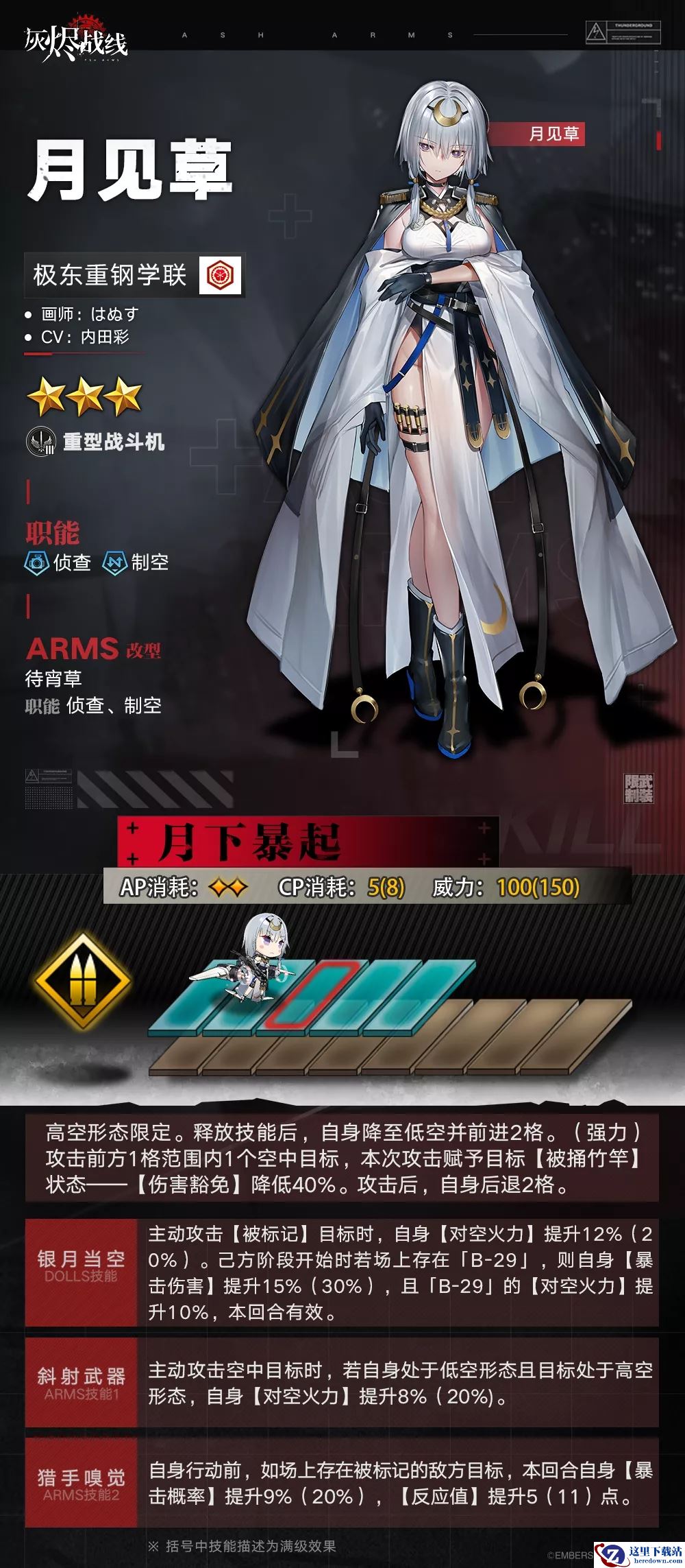《灰烬战线》游戏中的月见草是一名新上线的角色,相信还有很多小伙伴不是很清楚月见草怎么样。下面小编给大家带来了灰烬战线月见草介绍,感兴趣的小伙伴们一起来看看吧,希望能帮助到你们。