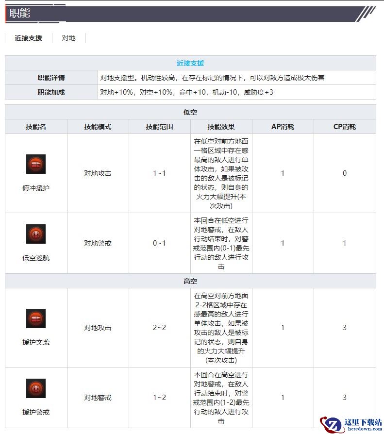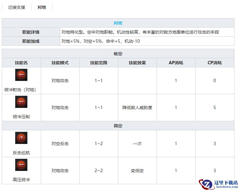 进行攻击时,如果自身下方一格区域存在至少一个己方单位,则自身的对地命中补正和暴击概率小幅提升(本次攻击)