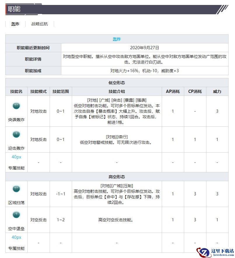 专属技能效果=B-17对地面0-7区域内所有被标记的敌人进行强力轰炸,并使这些敌人的反应值和机动值小幅降低(1回合)