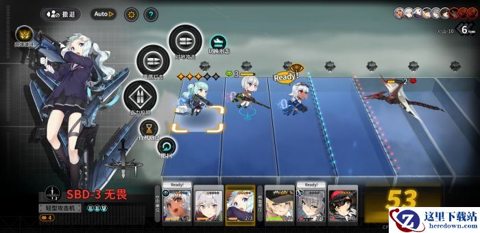 第一回合,我方全部挺进,侦查飞机进入高空状态,地面部队吸引火力的人员需要停留在boss的流刃一闪α的攻击范围内,有输出能力的单位进行攻击。