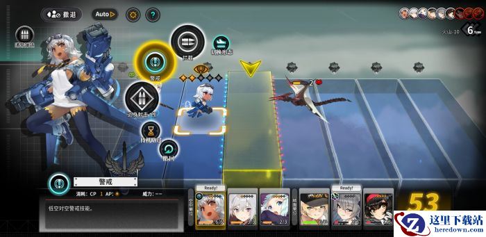 第四回合,侦察机前进一步对地面全部单位进行标记,攻击机前进对boss进行震慑打击降低boss的威胁值,使之后的奇袭白刃单位可以正确的白刃到boss后方的防空单位上,地面继续派人员进入boss流刃一闪β的攻击范围内,有输出能力的单位进行攻击。