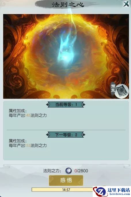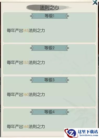1、法则之心是一个产出法则之力的“建筑”,等级越高则每年产出的法则之力就越多。