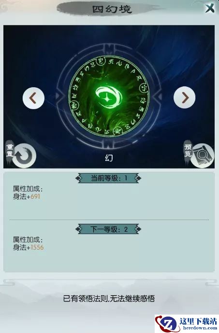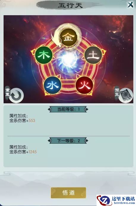 共有金木水火土五行法则可供参悟,参悟后可提高对应属性的伤害,同四幻境一致,只能选择一法则进行参悟。