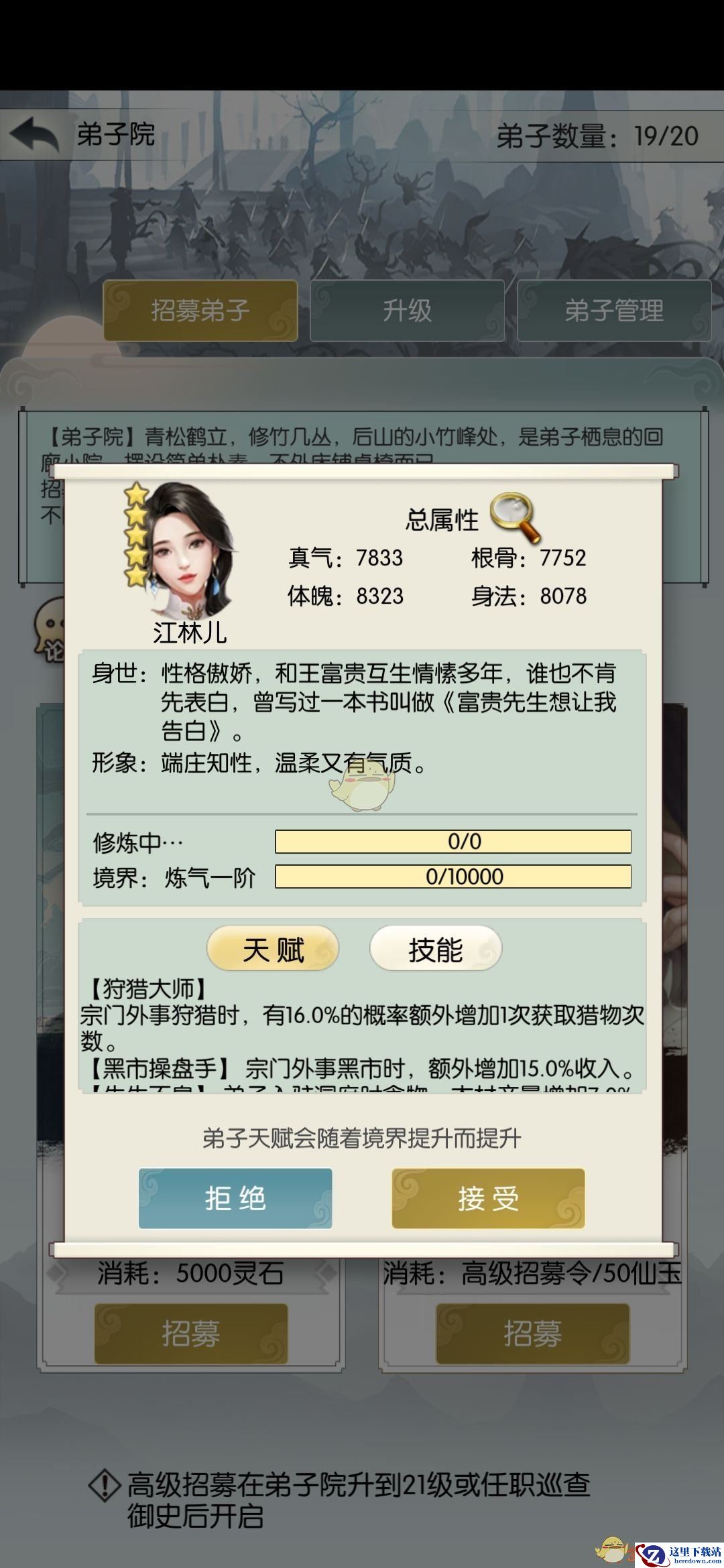 从修仙营地上看属性最好的应该是血影,目前还没有,其次是凌青竹和唐叁,再就是四星的雪琪和李纯均。最后是石天昊,沐白,滕青山等等,也抛开天赋不说,尽量上五星弟子,技能的加成高,所以需要洗髓配合,尽量提高弟子的四维属性。