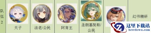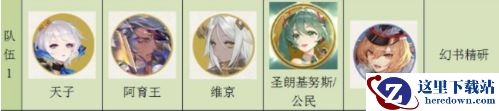 队伍1:利用龙妈增伤、菲比尔大招、卡琳的全体额外普攻,使得往世书可以在一回合内留下多个结界,最后由初音书界技能收尾,争取在第一回合内打出高额伤害。(启迪也可用神之启迪)