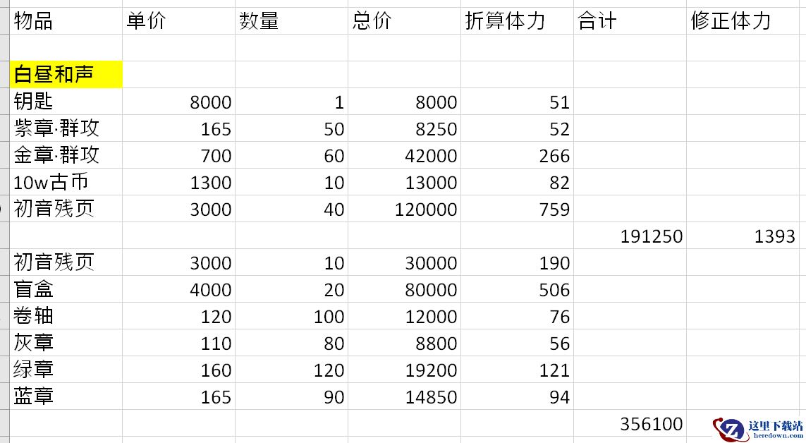 高性价比部分,四个商店合计需78w币,(按现有比例)约需5700体力,除以21天约为272体/天。