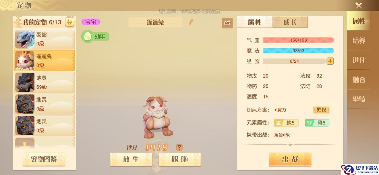 宠物有六项成长内容,也就是俗称的宠物资质。成长数值越高,在宠物升级后,能获得的相应属性值越多。宠物成长可以通过重塑来进行改变,也可以通过训练来提升。