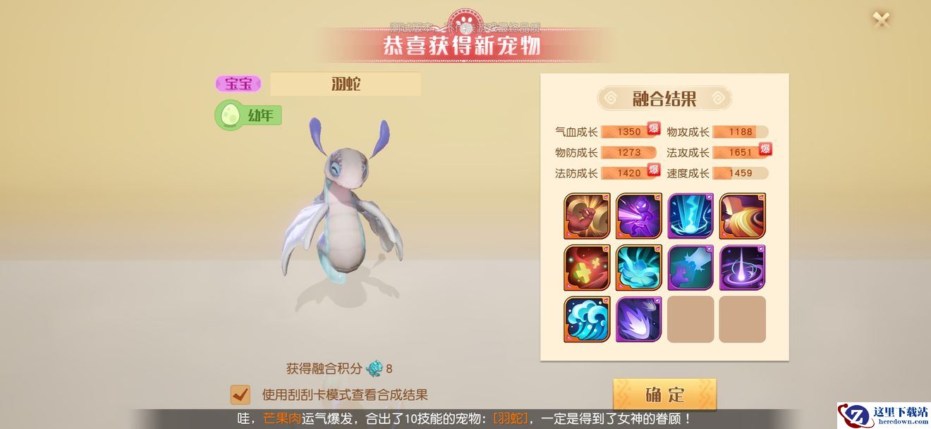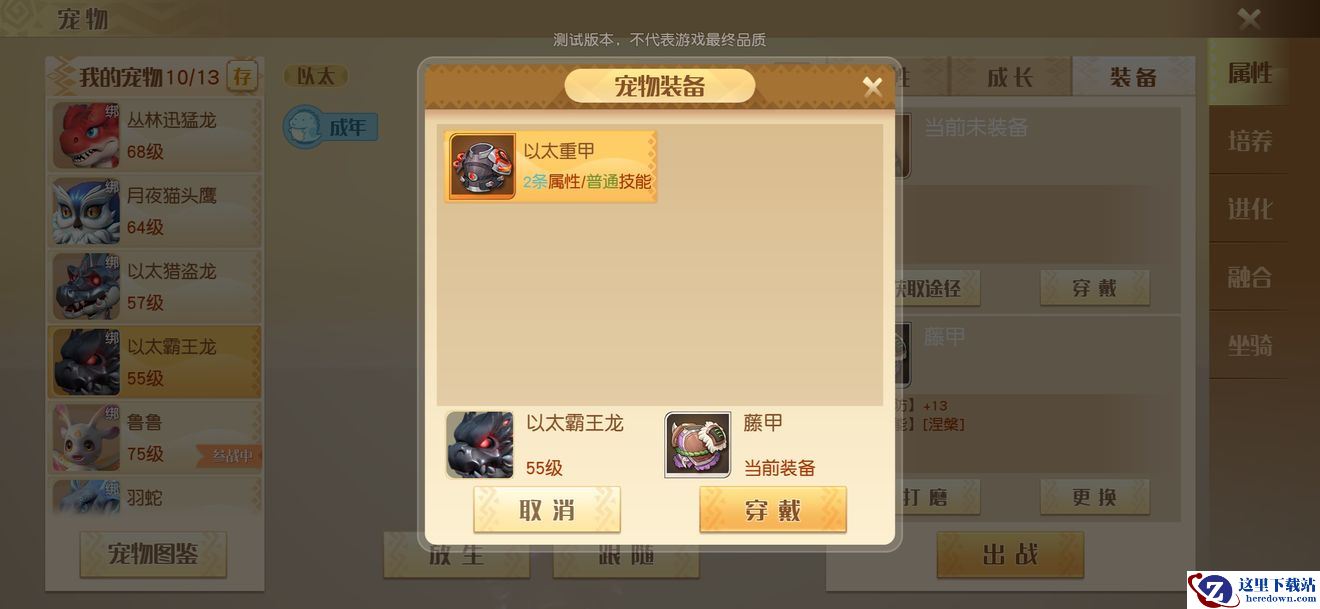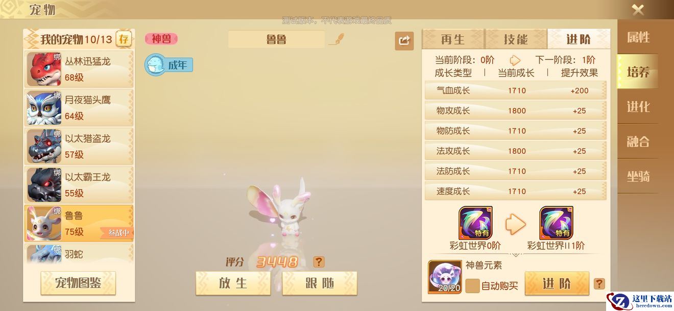投喂食物改变体型,进化后宠物进入成年期。宠物体型不影响宠物属性,只是让宠物外观更个性。对宠物体型不满意,可对宠物进行退化操作,重新培养宠物大小。