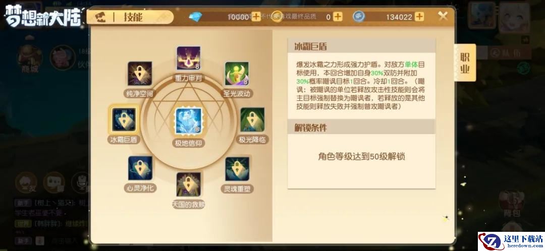 技能冰霜巨盾,增加自身防御后攻击单体敌人并且概率嘲讽目标1回合。你就想象一下奶妈突然觉得学医救不了造梦者,提着大盾牌一个欺身而上,嘴里还念念有词。