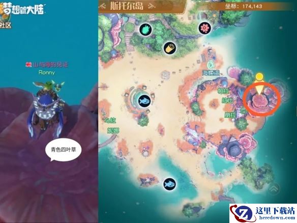 然后租赁坐骑,到斯托尔岛坐标174.143捡起青色四叶草完成任务。具体位置如下图: