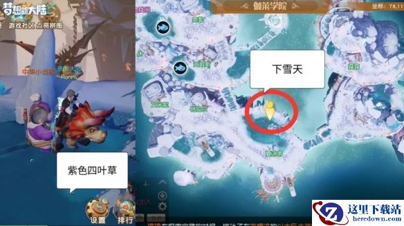 奇遇紫色四叶草:伽莱学院坐标79.118,天气为下雪,捡起地上的紫色四叶草完成任务。具体位置如下图: