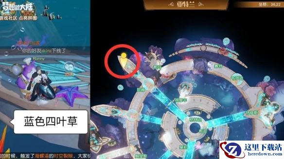 奇遇蓝色四叶草:亚特兰坐标36.22,点恐吓海星,然后捡起蓝色四叶草完成任务。具体位置如下图: