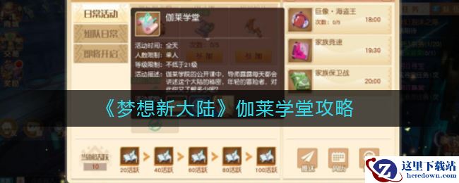 以上就是《梦想新大陆》伽莱学堂攻略,更多游戏攻略请持续关注这里下载站!