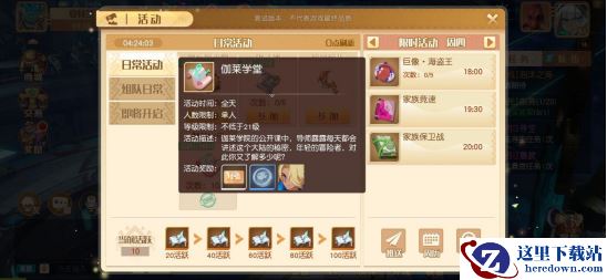 活动描述:迦莱学院的公开课中,导师露露每天都会讲述这个大陆的秘密,年轻的冒险者, 对此你又了解多少呢?