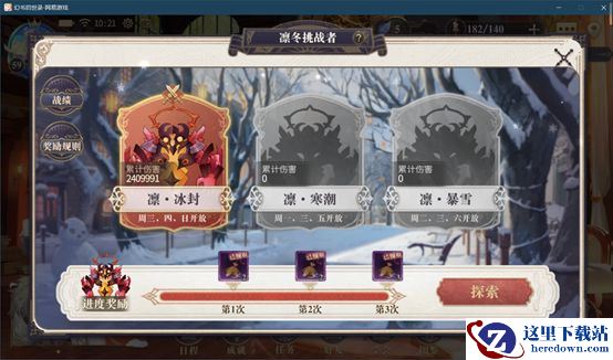 首先,本次凛冬挑战者分为三个关卡,凛·冰封、凛·寒潮、凛·暴雪。