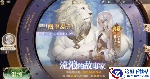 奖励:典藏幻书[伊索寓言]将在[流浪的故事家]之中获得召唤概率up,[伊索寓言]在抽到典藏幻书时出现的概率将提升至40%