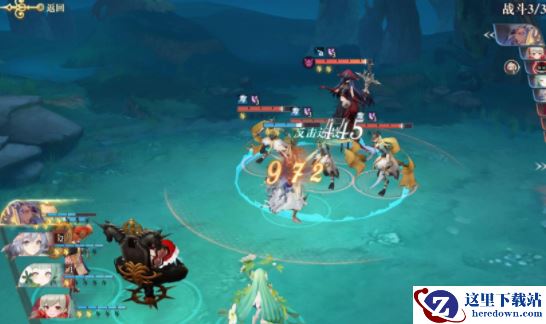 首先,让法芙娜上场进行一波小消耗,接着艾梅拉德为伊舍那增加能量,然后宁子与爱丽丝配合使用处刑,这样一场攻击下来便可以将小怪们打个半死了。