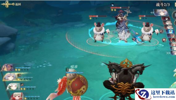 第二波敌人登场,有三个,一个秘仪教典两只耗子,这个秘仪教典是可以给敌人进行加血的,所以玩家一定要先集中火力针对她,将她消灭之后,剩下的两个耗子就很好消灭了,但是这个也的确比较难搞,她是变异版的,血很厚,还能为敌方增加攻击属性,并且能够驱散敌方的负面状态。
