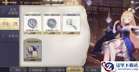 未定之至理是在学会中换取的,一天只能换取3个。一个需要480个学分。