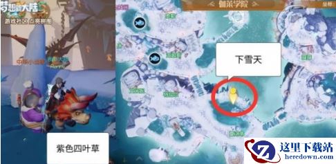 去伽莱学院坐标(79,118)位置,天气为下雪,捡起地上的紫色四叶草完成任务。