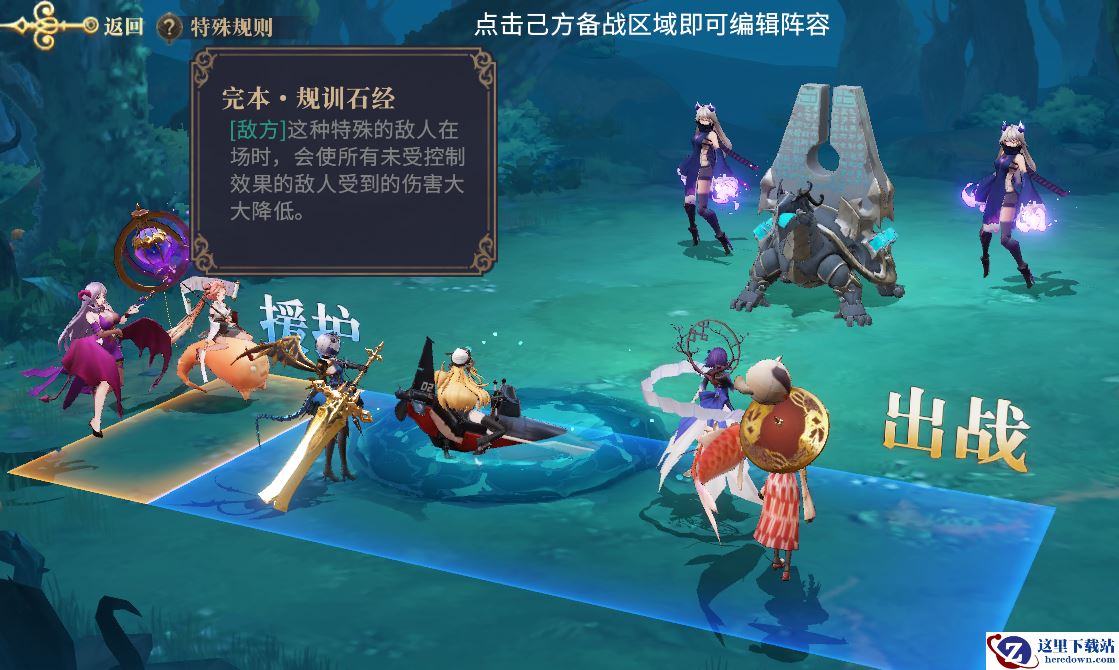 主力队伍上最强力的输出,两个控制回合内击杀石碑,这关就过了。