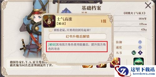 胡桃夹子之所以强力,就是因为有【士气高涨】这个被动技能,在其他角色使用能量后,可以直接提升我方角色的攻击力,也就是说回合数越多队伍伤害越高。