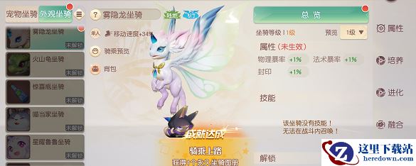 4.雾隐龙就属于外观坐骑,玩家获得雾隐龙图册之后,在外观坐骑中找到雾隐龙点击解锁即可。
