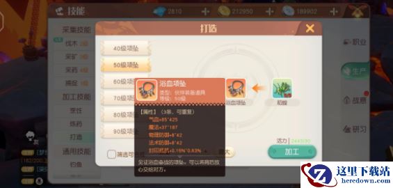 玩家可以在游戏页面的右下角点击技能图标,然后进入生产技能界面,然后再点击加工技能中的打造,最后选择浴血项坠点击加工打造就可以了,如果玩家的原材料充足也可以选择打造数量,一次最多可以打造三条。总的来说还是很便捷的,可以批量制作。