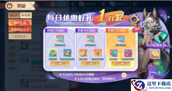 进入游戏后,点击左上方的奖励—选择特惠—选择每日礼包,充值18元即可获得价值540钻石的礼包,内含以太元素、宠物碎片、钻石和1个神秘钥匙。未及时领取的每日礼包奖励会得到保留哦,不用担心忘记领取了。