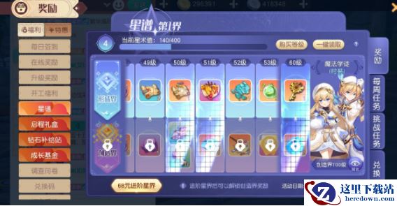 星谱相当于战令系统,当其升到特定等级即可领取神秘钥匙,若玩家将星谱进阶到创造界还能够领取双倍神秘钥匙奖励。