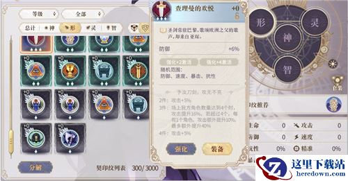 除此之外,如果你主玩召唤队,也可以带【查理曼的欢悦】,属性优先暴击率。查理曼的欢悦有着很高的攻击力加成效果,可以为伊舍那的炸弹提供更高的伤害上限。